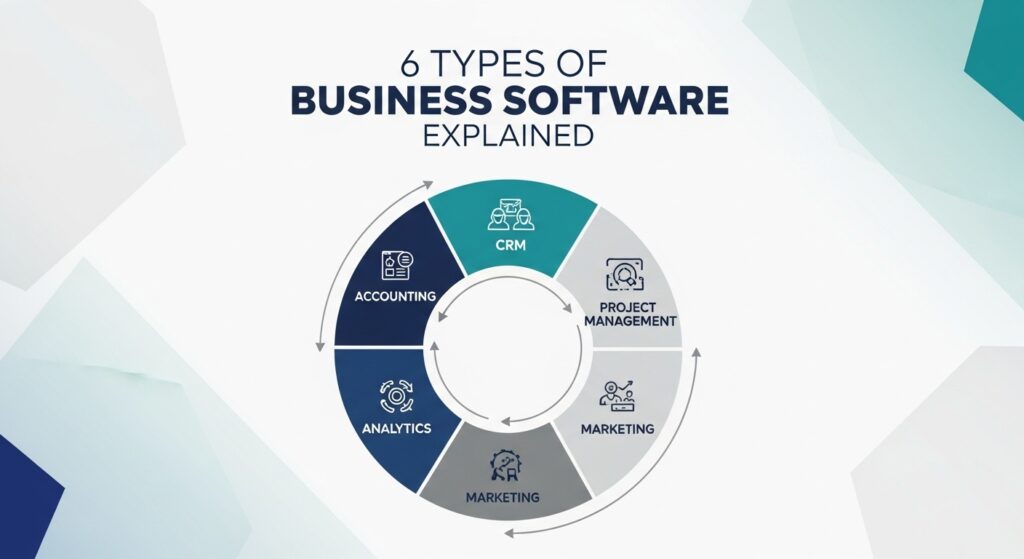 The 6 types of business software — accounting, CRM, ERP, project management, communication, and marketing — are essential for success in 2025. They streamline operations, boost customer satisfaction, and support growth.